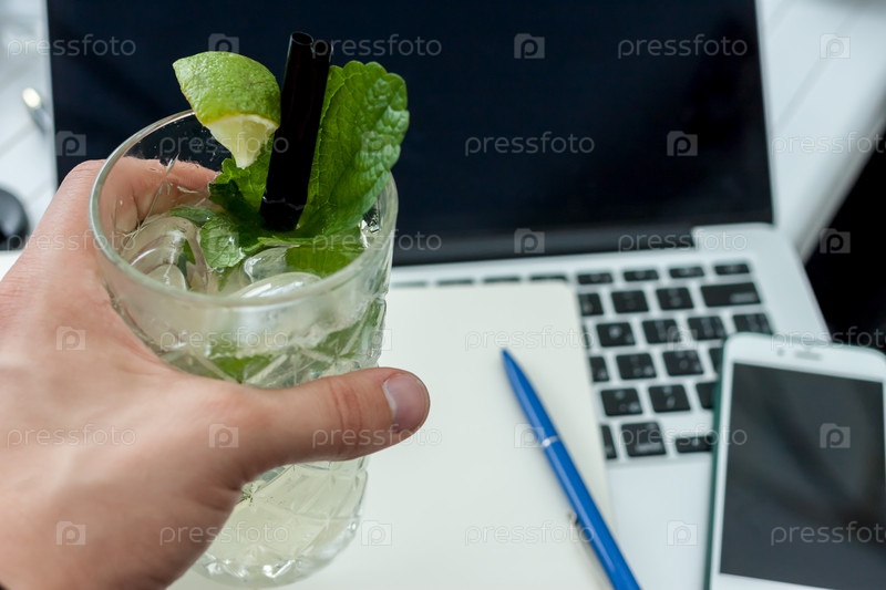Стакан мохито на ноутбуке