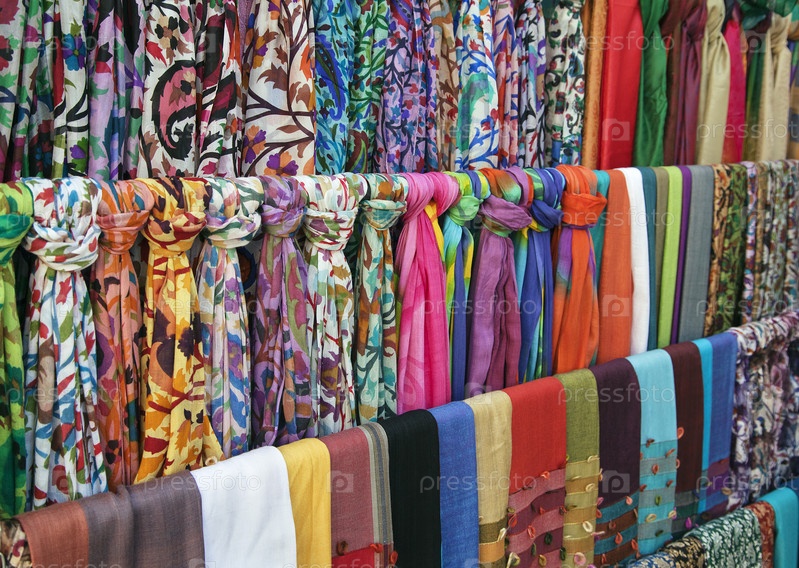 Красочные шарфы на восточном рынке