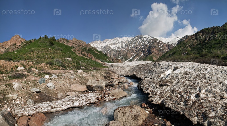 Небольшой горный ручей весной