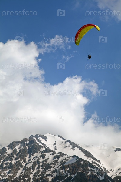 Парапланерист в синем небе