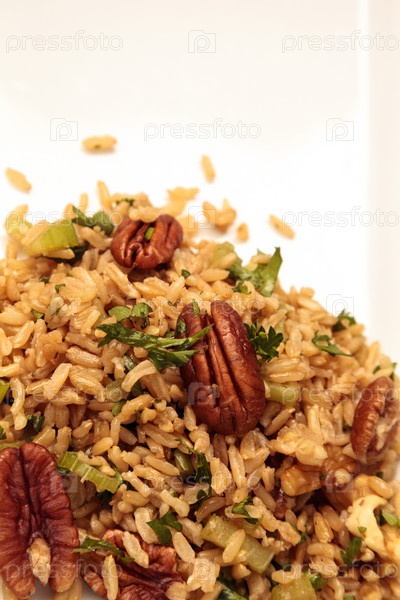 Коричневый рис с кинзой и орехами