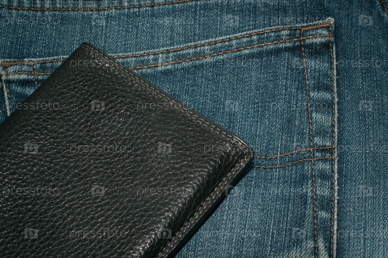 Черный бумажник и синие джинсы