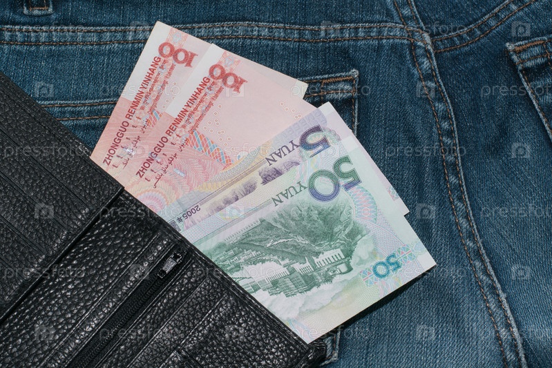 Юани в кармане джинсов. Крупный план