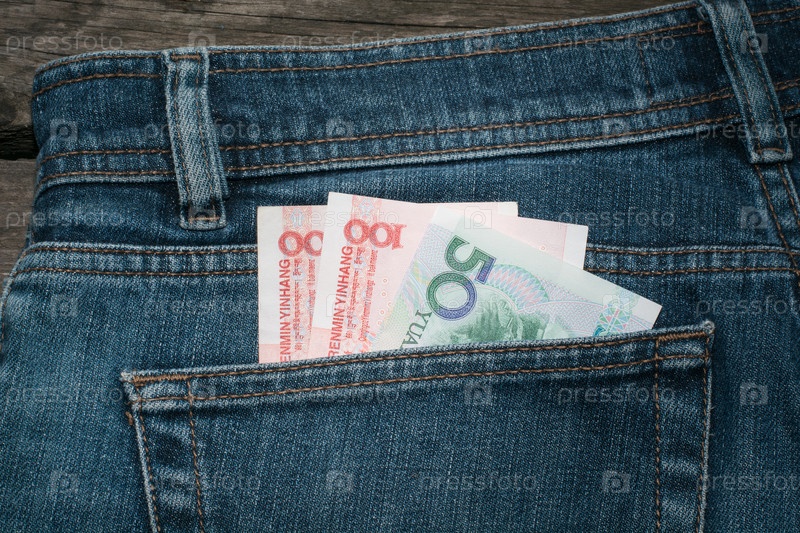 Юани в кармане джинсов. Крупный план