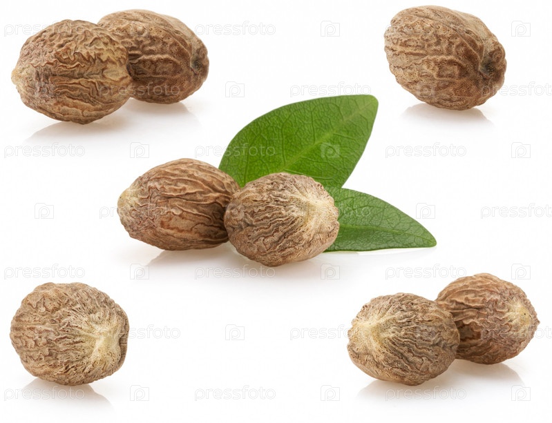 Мускатный орех на белом фоне