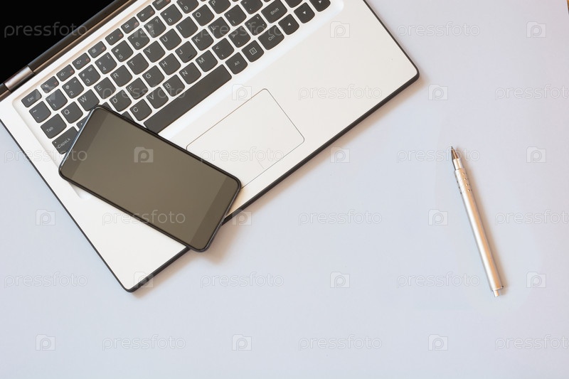 Открытый ноутбук и мобильный телефон