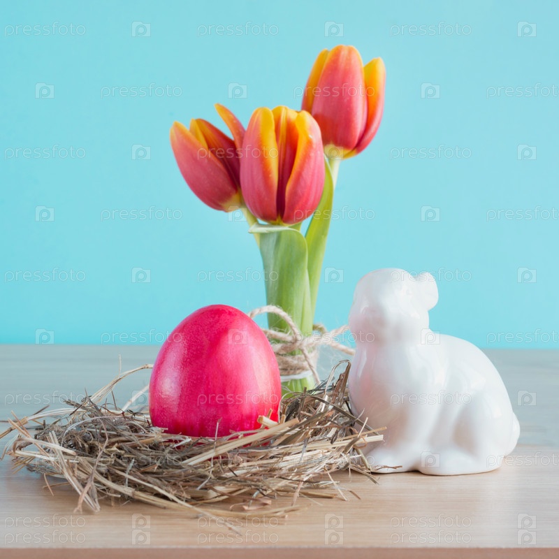 Красное яйцо в гнезде и кролик