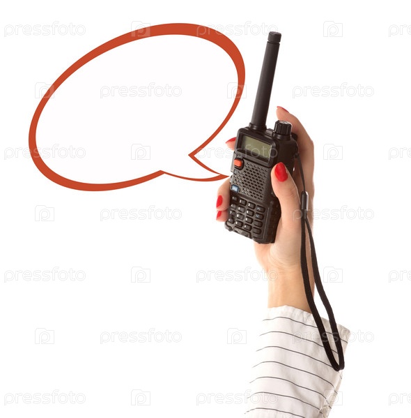 Рация в руке женщины с пустым текстовым полем