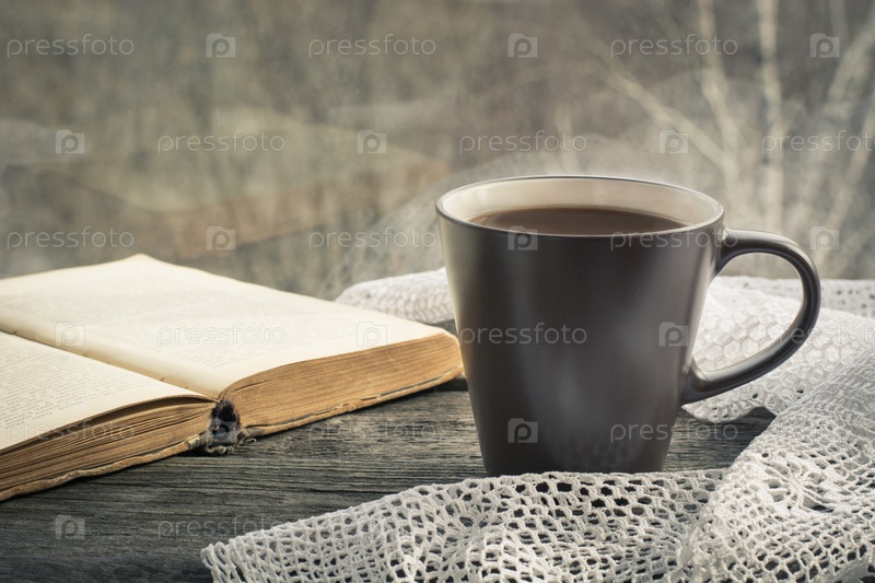 Чашка черного кофе с молоком перед окном