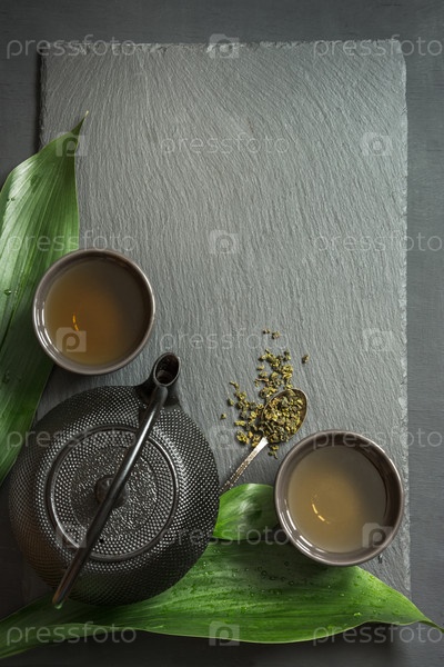 Зеленый японский чай на черном фоне