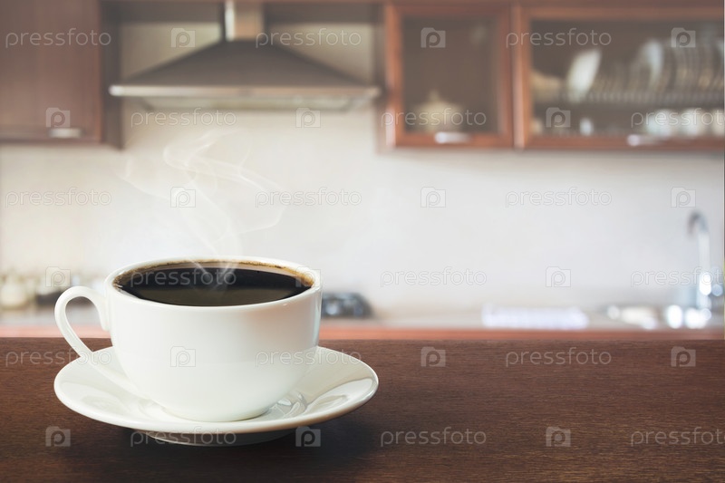 Горячая чашка черного кофе в современной кухне