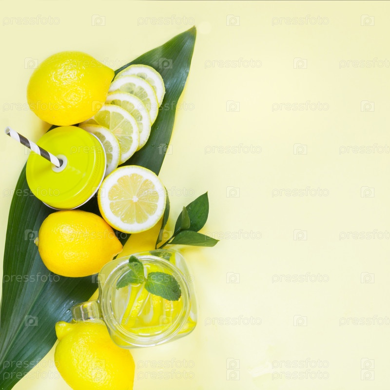 Летний освежающий коктейль с лимоном, мятой и льдом
