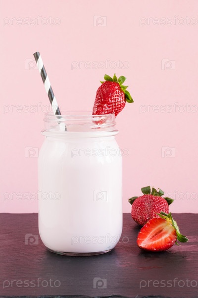 Клубничный молочный коктейль с ягодами