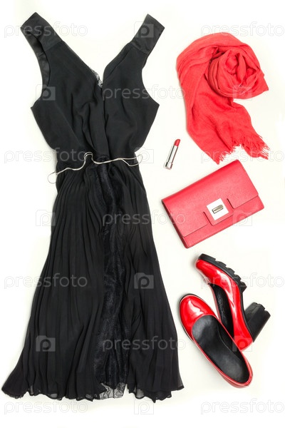 Черное платье и красные аксессуары для торжества