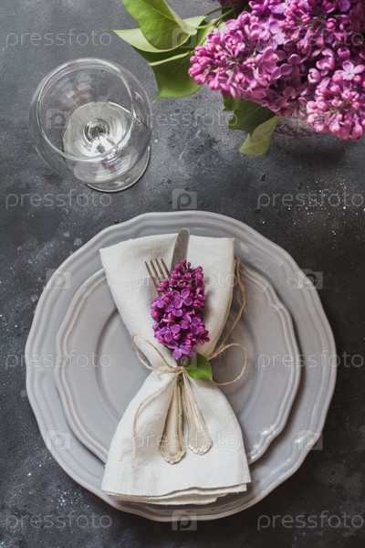Сервировка стола с сиренью