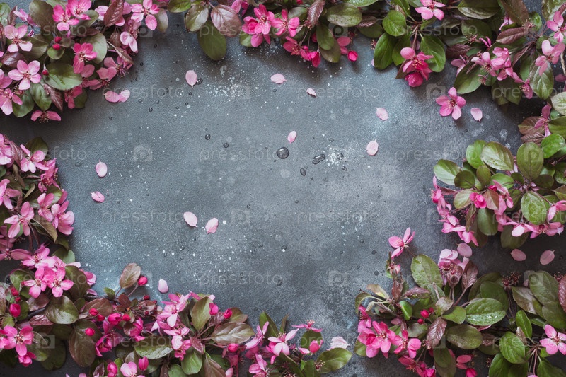 Розовые цветы яблони на винтажном столе