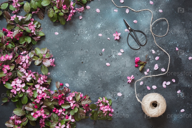 Розовые цветы яблони на винтажном столе