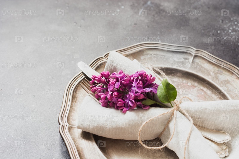 Сервировка стола с цветами сирени