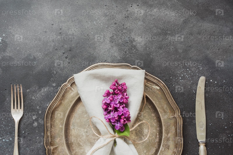 Сервировка стола с цветами сирени