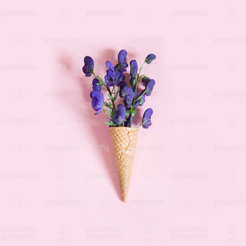 Фиолетовый цветок Aconitum в вафельном роге