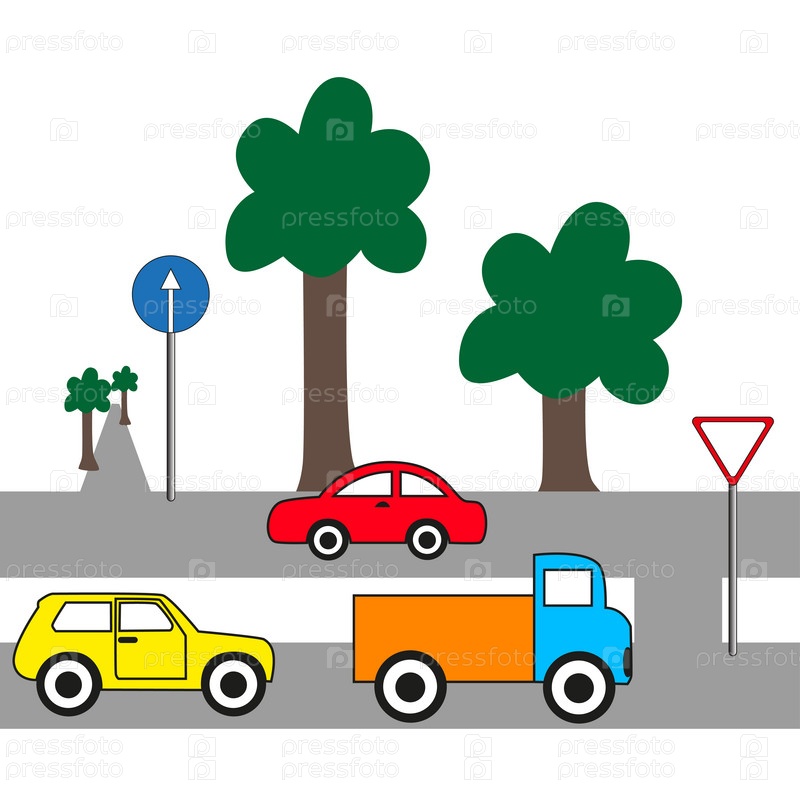 Грузовики и автомобили на дороге
