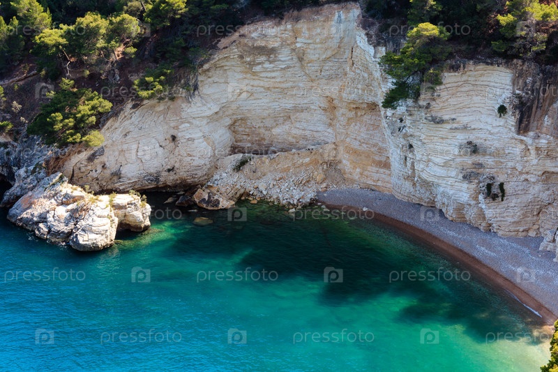 Летний пляж Кала ди Порто Греко, Гаргано, Апулия, Италия