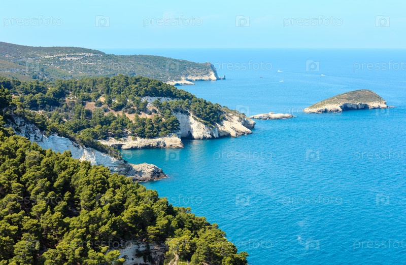 Летний пляж Кала ди Порто Греко, Гаргано, Апулия, Италия