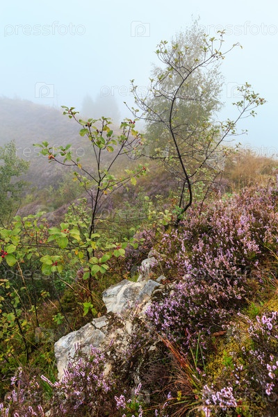 Туманное утро и роса на горных лугах