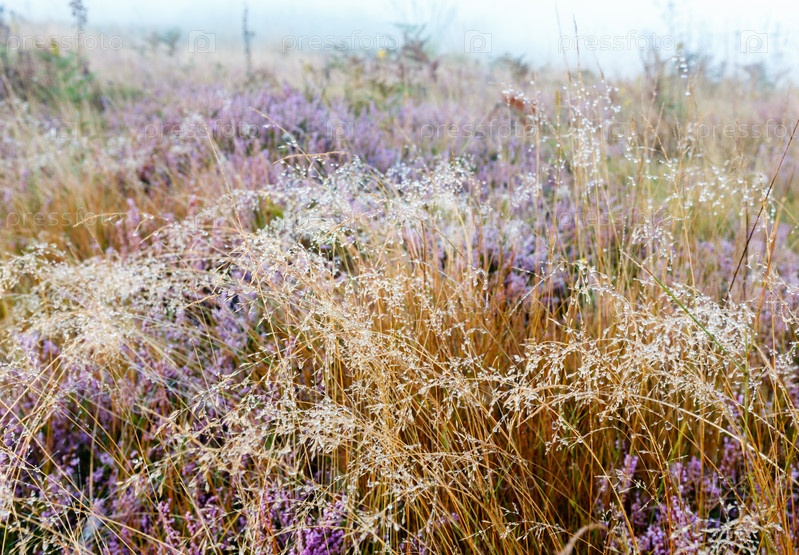 Туманное утро и роса на горных лугах