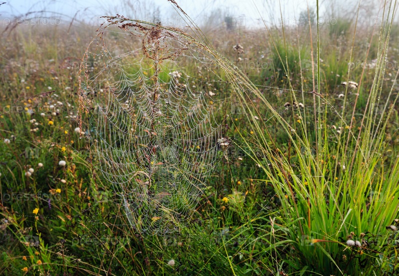 Туманное утро и роса на горных лугах