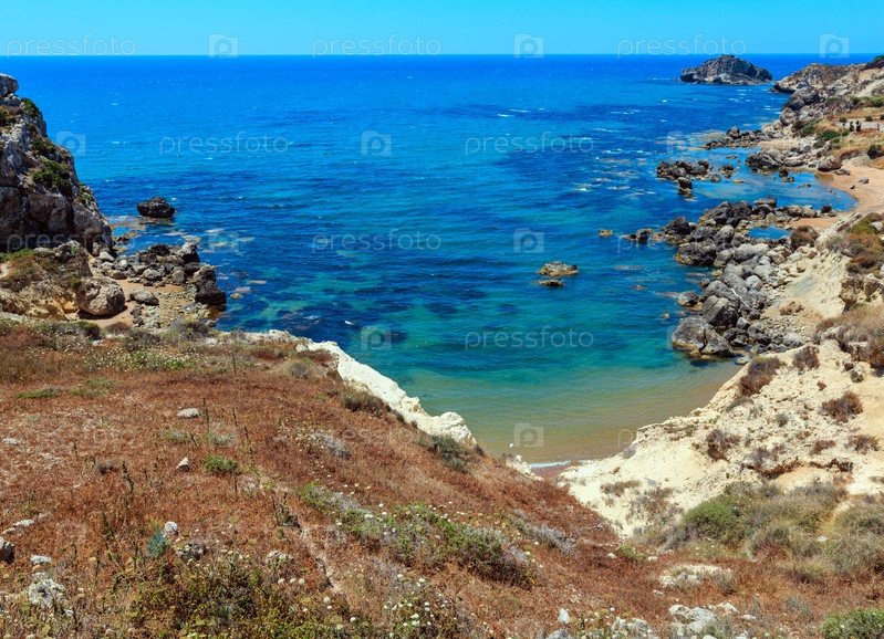 Морской пляж недалеко от Рокка-ди-Сан-Никола, Агридженто, Сицилия, Италия