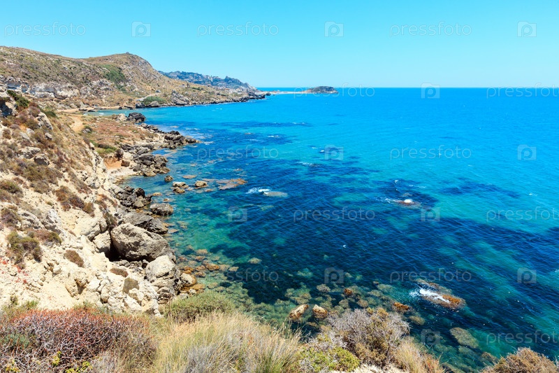 Морской пляж недалеко от Рокка-ди-Сан-Никола, Агридженто, Сицилия, Италия