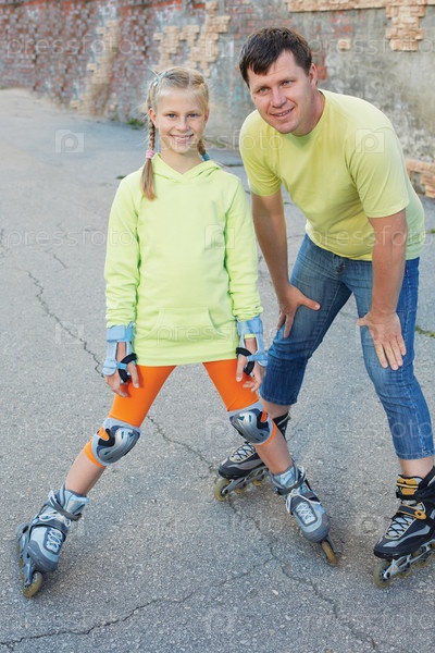 Отец и дочь на роликах