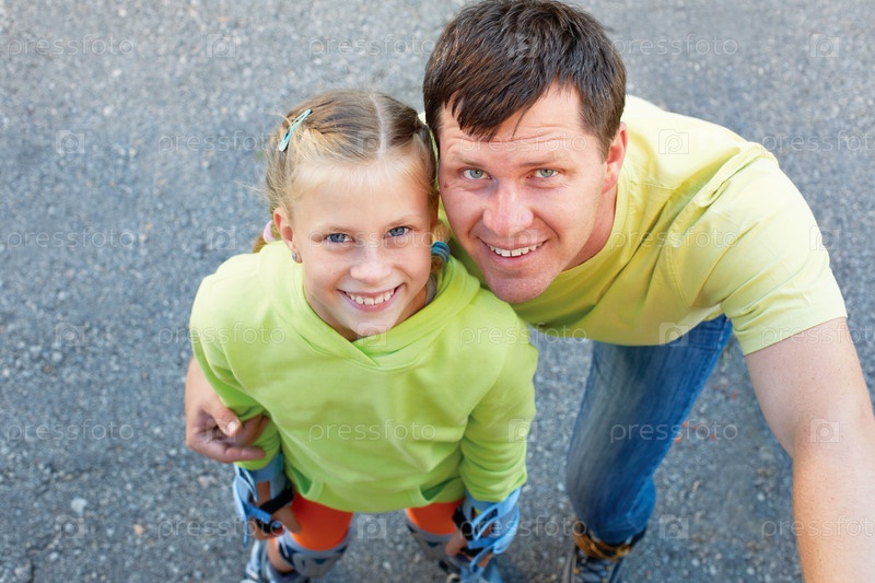 Отец и дочь на роликах