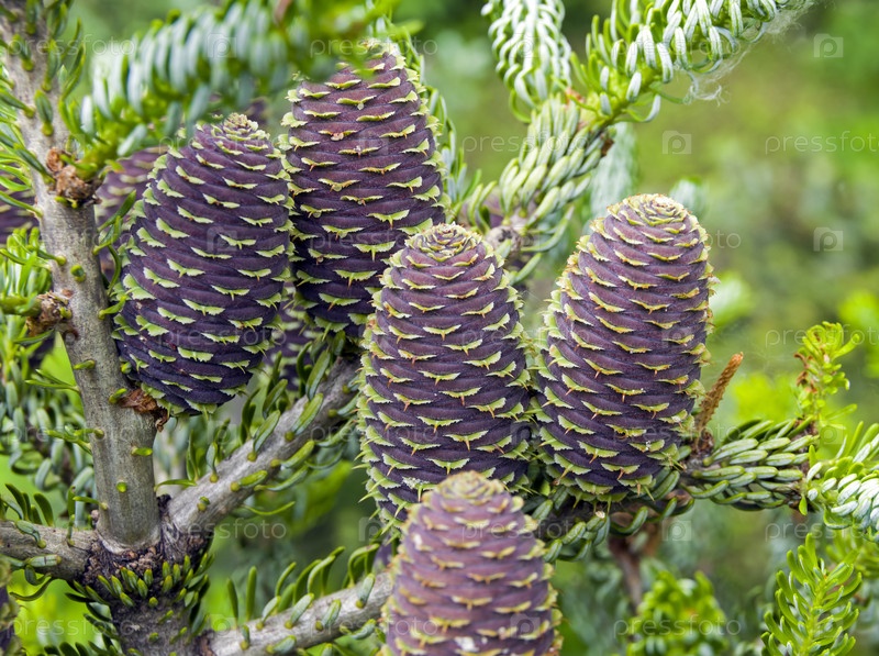 Молодые шишки на пихтовом дереве. Июнь