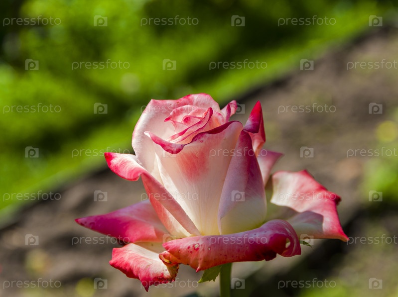 Цветущая нежная бело-розовая роза
