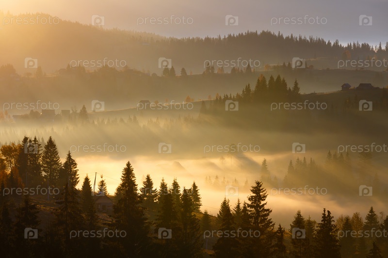 Первые лучи восхода солнца в Карпатах