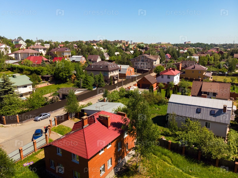 Вид коттеджного поселка недалеко от Москвы, Россия