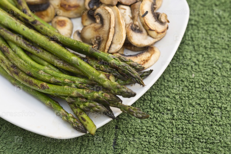 Жареная спаржа и грибы