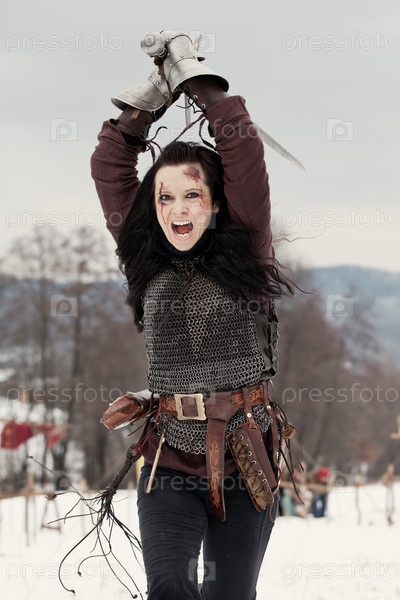 Женщина в средневековом костюме с мечом