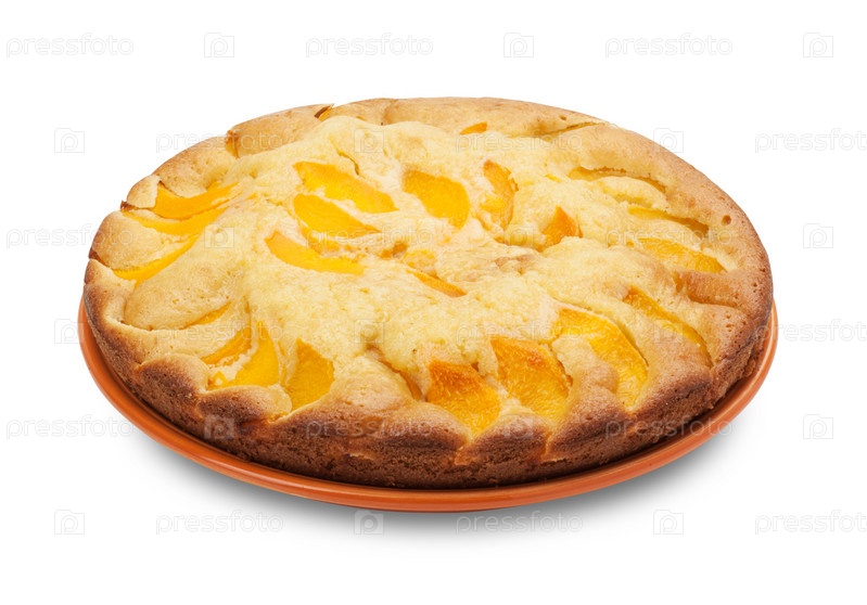 Пирог с персиками на белом фоне. Изолировано