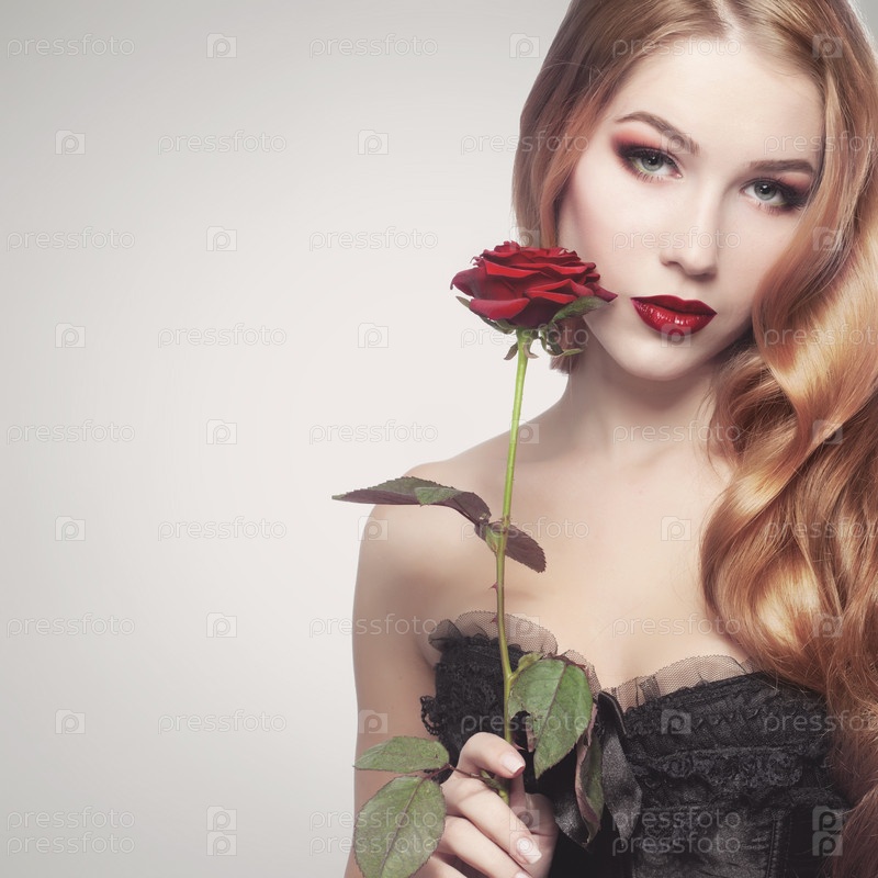 Красивая девушка, держащая розу