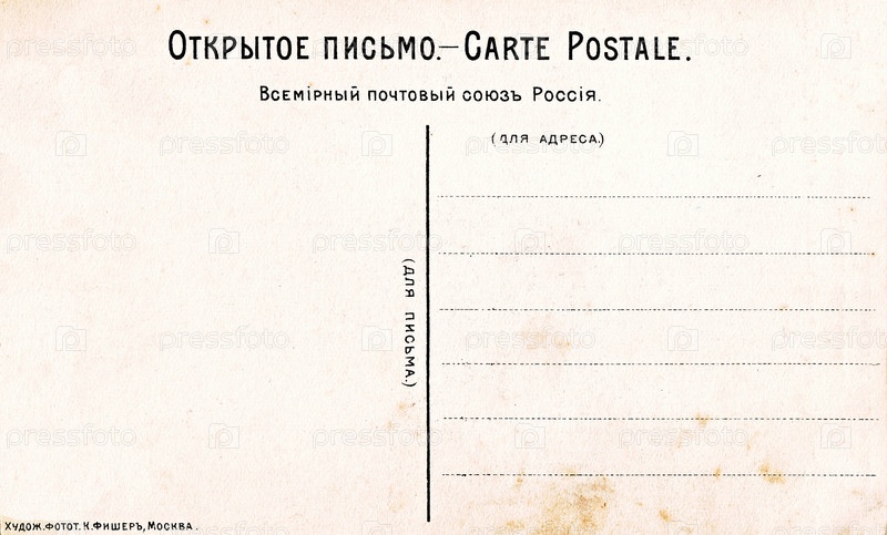 Оборот старинной почтовой карточки (до 1917 года)