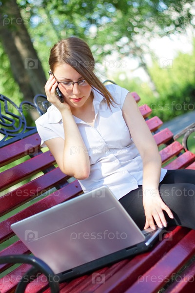 Девушка с ноутбуком на скамейке