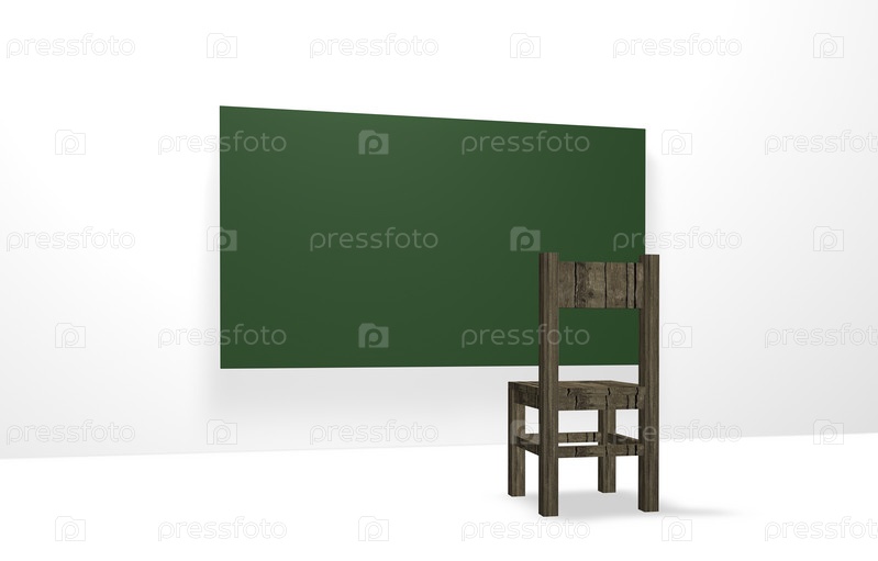 Стул и школьная доска. 3d Иллюстрация