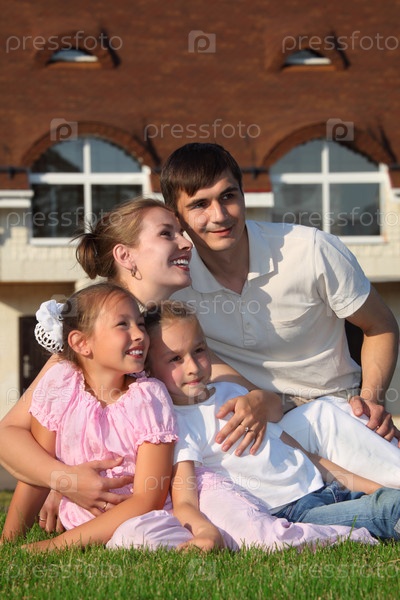 Родители с детьми сидят на траве