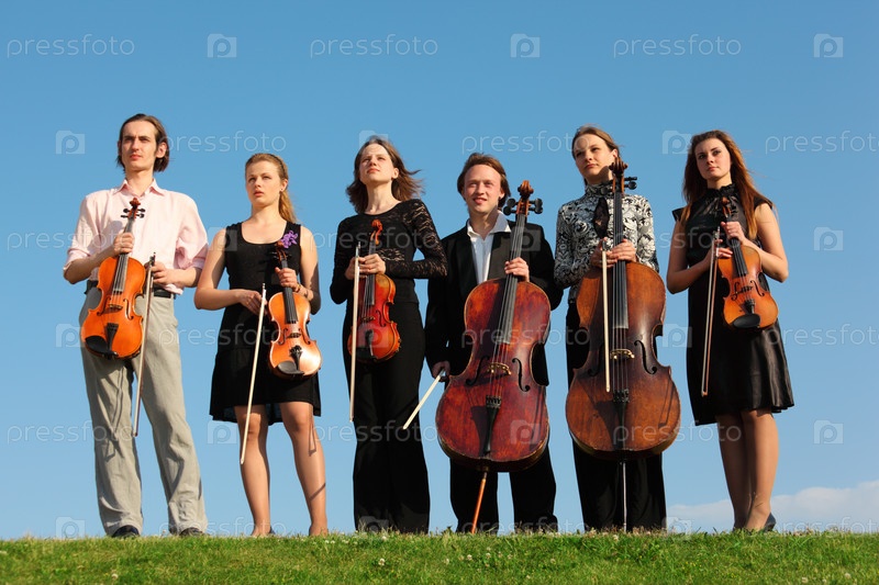 Молодые музыканты играют на природе