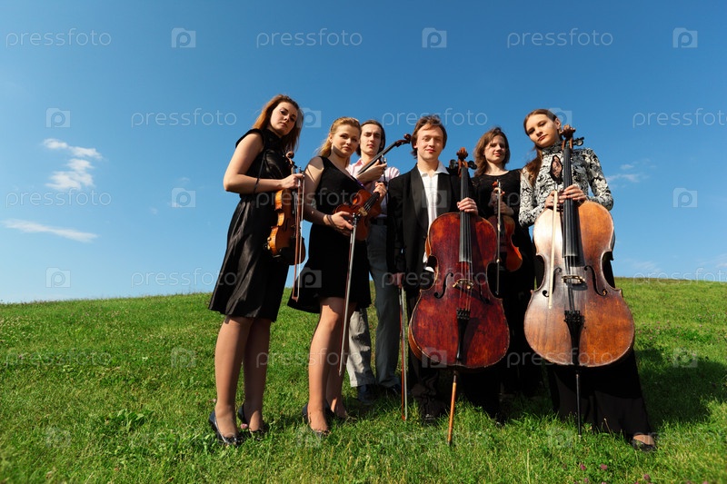Молодые музыканты играют на природе