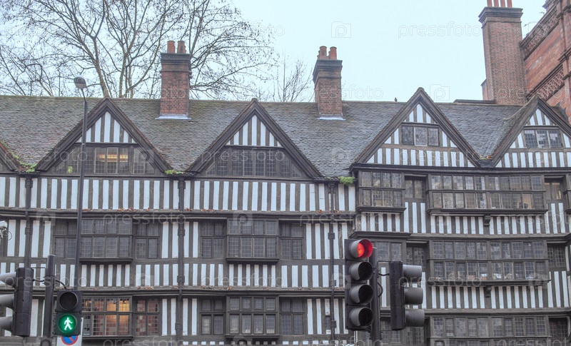 Древняя деревянная конструкция фахверк, здание в Лондоне, Великобритания