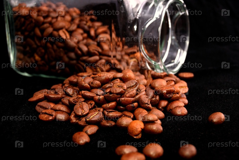 Зерна кофе в банке и возле нее